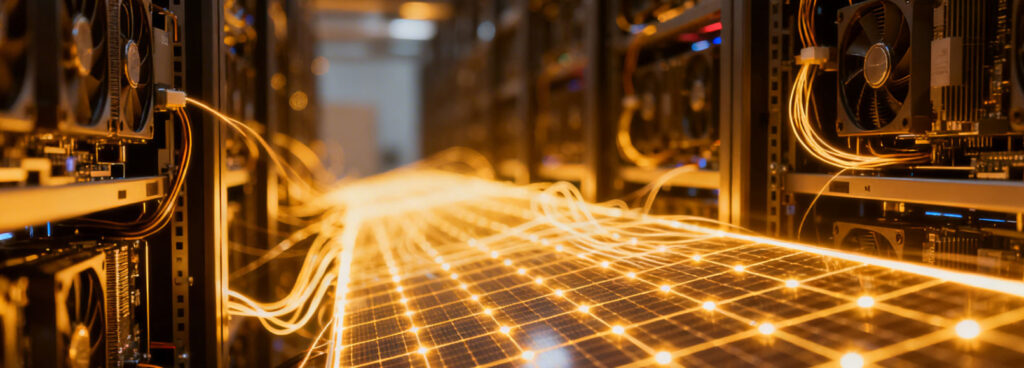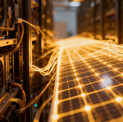 Our AI platform matches compute jobs to periods of peak solar surplus — keeping costs low and ensuring workloads run on clean power.
